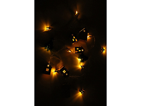 | Комплектность | домик- 5 шт., елочка- 2 шт., звездочка- 8шт., лампочка (горит желтым цветом)- 15шт., коробка 21,7 х 16,7 х 9,3 см |