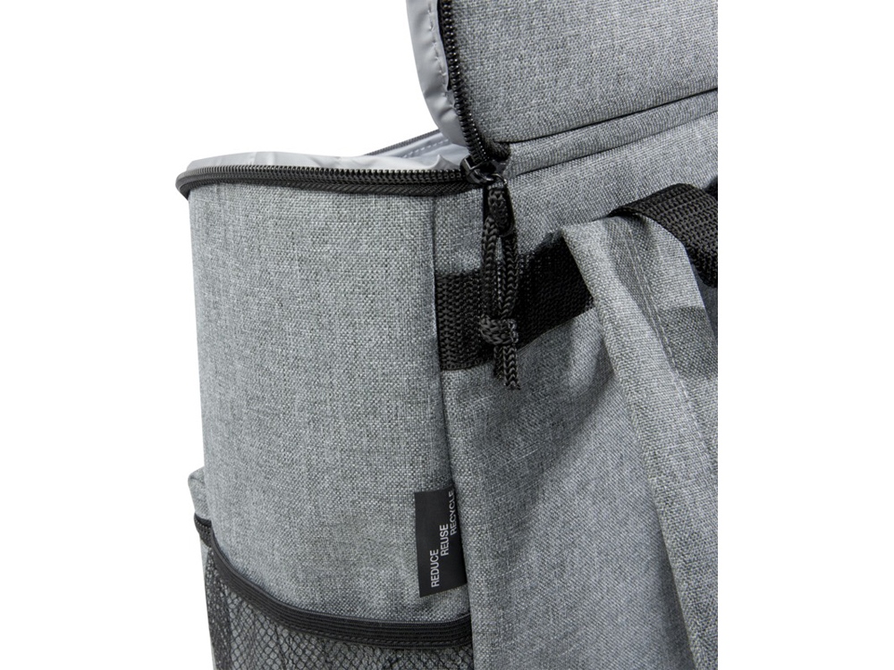 Рюкзак-холодильник Excursion с большим основным отделением на подкладке из PEVA-материала и молнией идеально подходит для того, чтобы взять его с собой в поход или на пикник. Термоотделение изготовлено из переработанного РЕТ-пластика, поэтому является экологичным выбором. Имеет боковой сетчатый карман для бутылки с водой, а в передний карман на молнии можно положить небольшие предметы. Мягкие плечевые ремни можно отрегулировать для идеальной и удобной посадки.