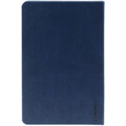 Ежедневник с твердой обложкой, выполнен из материала Latte, темно-синий ХХ, дополнен ляссе в цвет обложки.