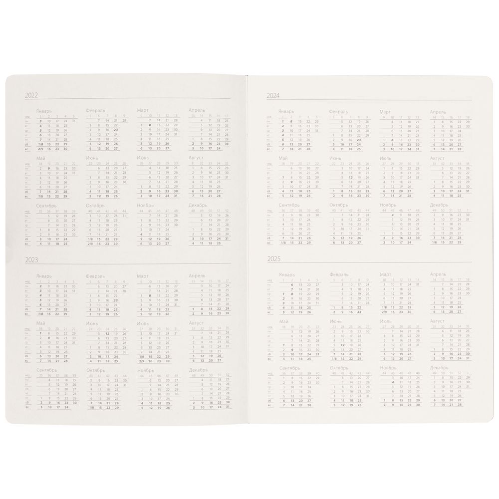 Гибкая обложка ежедневника выполнена из материала Soft Touch Pearl, черный АА и цветного Latte (внутренняя часть обложки).