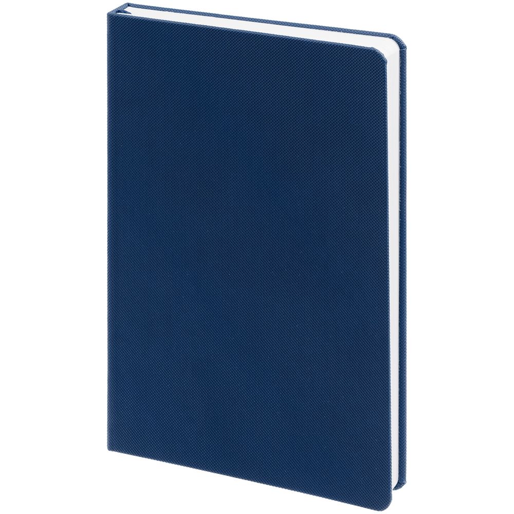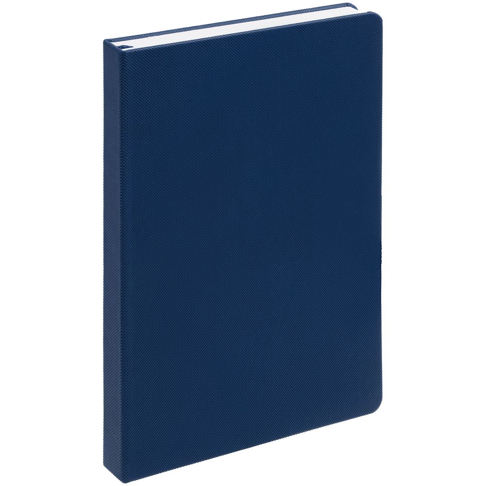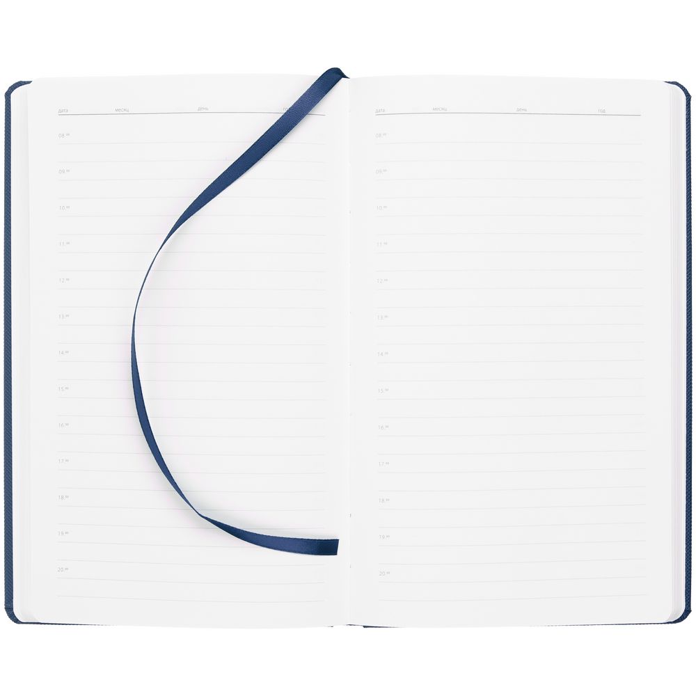 Ежедневник с твердой обложкой, выполнен из материала Canyon, темно-синий ХХ, дополнен ляссе в цвет обложки.