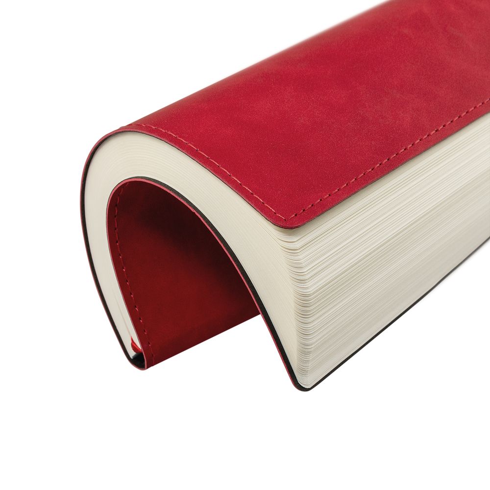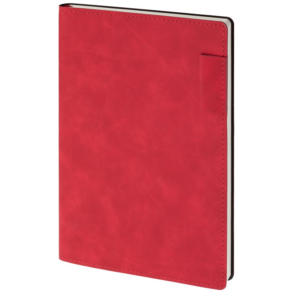 Ежедневник  17х24 см, с гибкой обложкой, выполнен из материала Nubuck Touch, красный РР, дополнен петлей-лейблом для ручки и двойным ляссе в цвет материала.