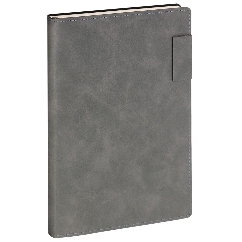 Ежедневник  17х24 см, с гибкой обложкой, выполнен из материала Nubuck Touch, темно-серый ЕЕ, дополнен петлей-лейблом для ручки и двойным ляссе в цвет материала.