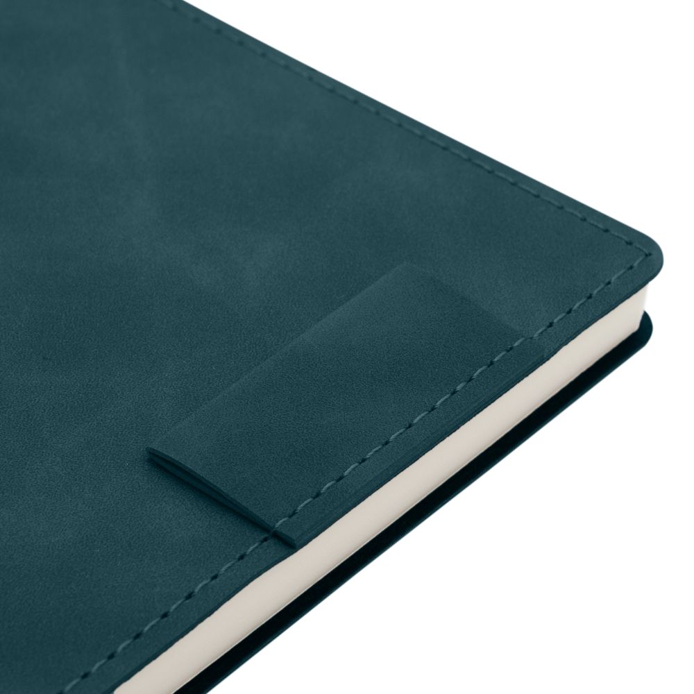 Ежедневник  17х24 см, с гибкой обложкой, выполнен из материала Nubuck Touch, темно-зеленый VV, дополнен петлей-лейблом для ручки и двойным ляссе в цвет материала.