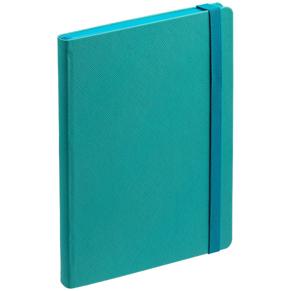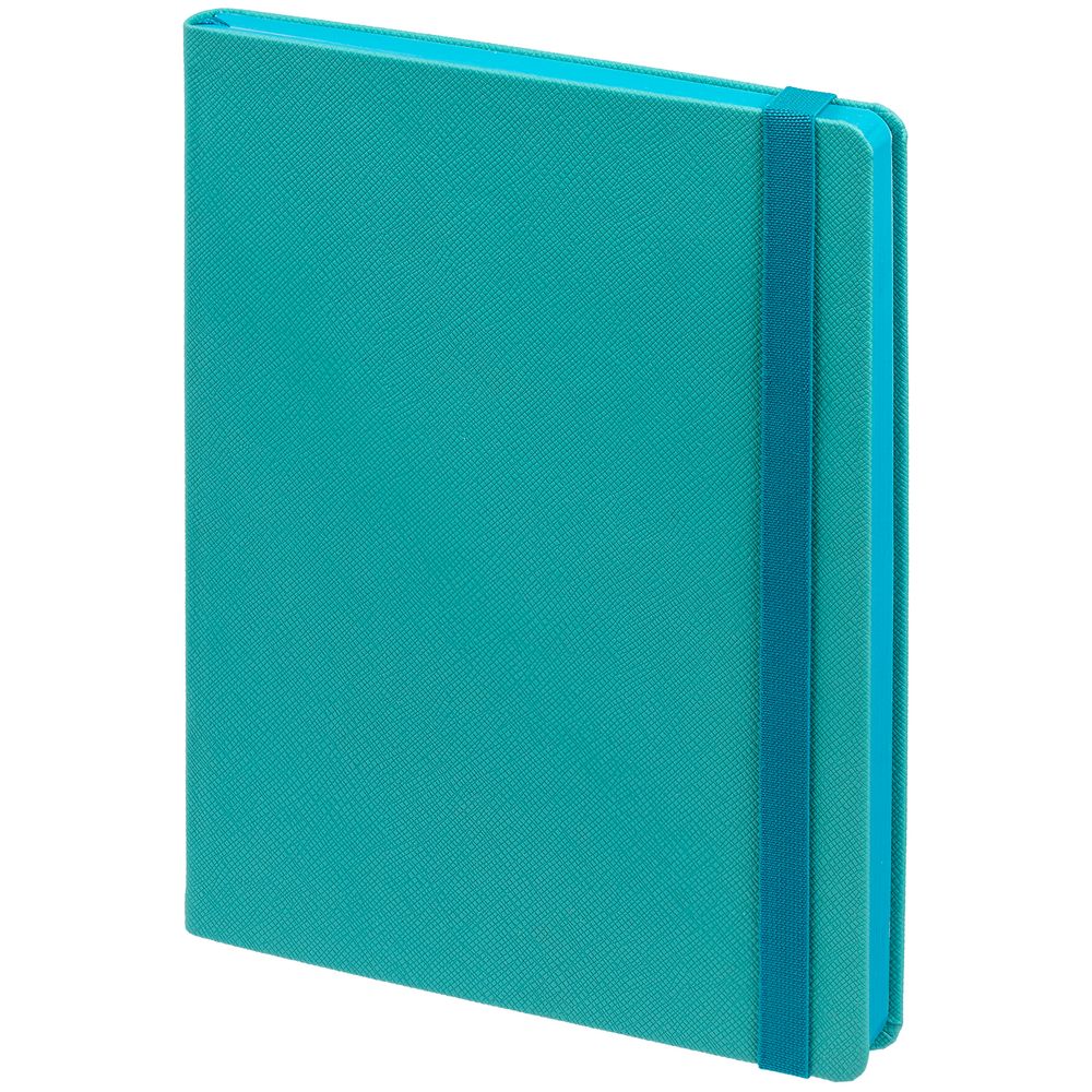 Ежедневник с полутвердой обложкой выполнен из материала Nice Touch,  морская волна II, и дополнен резинкой шириной 1 см и ляссе в цвет обложки.