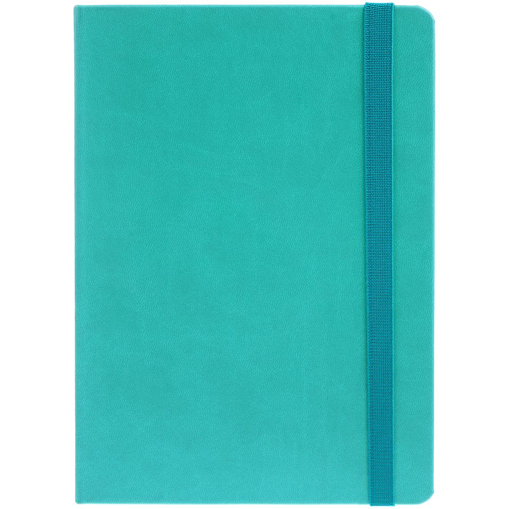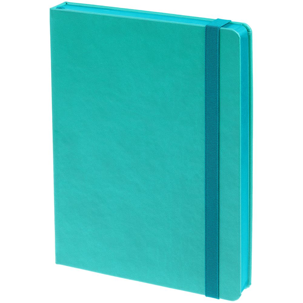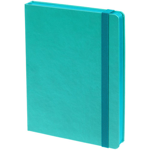 Ежедневник с твердой обложкой, выполнен из материала Latte, цвет морской волны II, обрез бирюзового цвета, дополнен резинкой и ляссе бирюзового цвета.