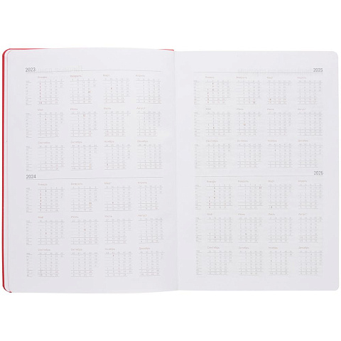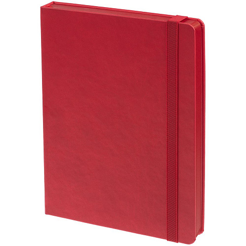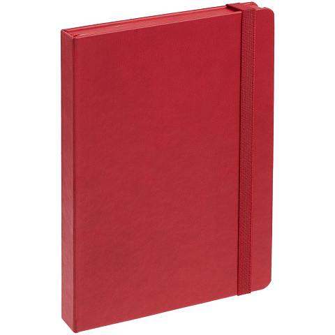 Ежедневник с твердой обложкой, выполнен из материала Latte, красный РР, обрез красного цвета, дополнен резинкой и ляссе красного цвета.