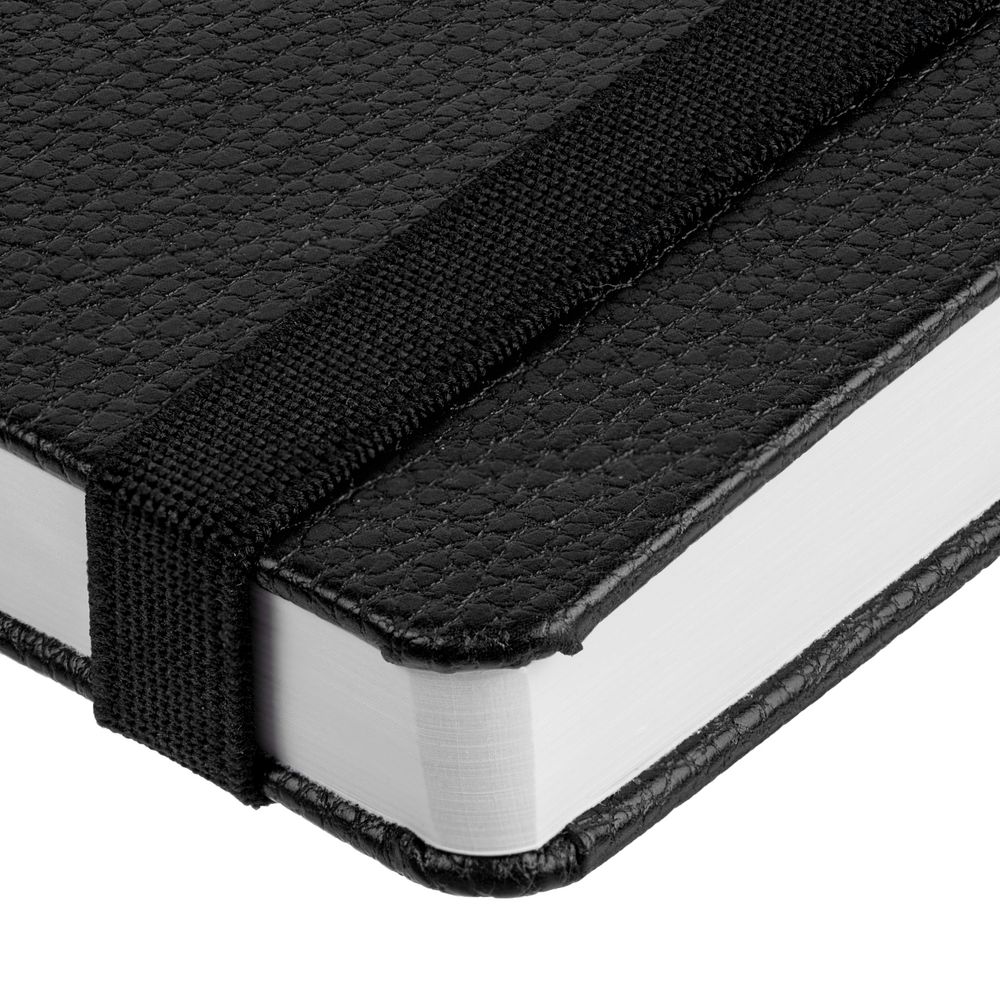 Ежедневник с твердой обложкой, выполнен из материала LaFite, черный АА, дополнен резинкой и ляссе в цвет обложки.