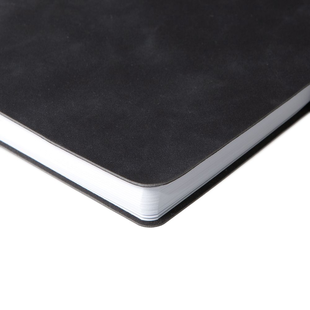 Ежедневник с гибкой обложкой, выполнен из материала Nubuck Touch, черный АА, дополнен ляссе и петлей-резинкой для ручки черного цвета.