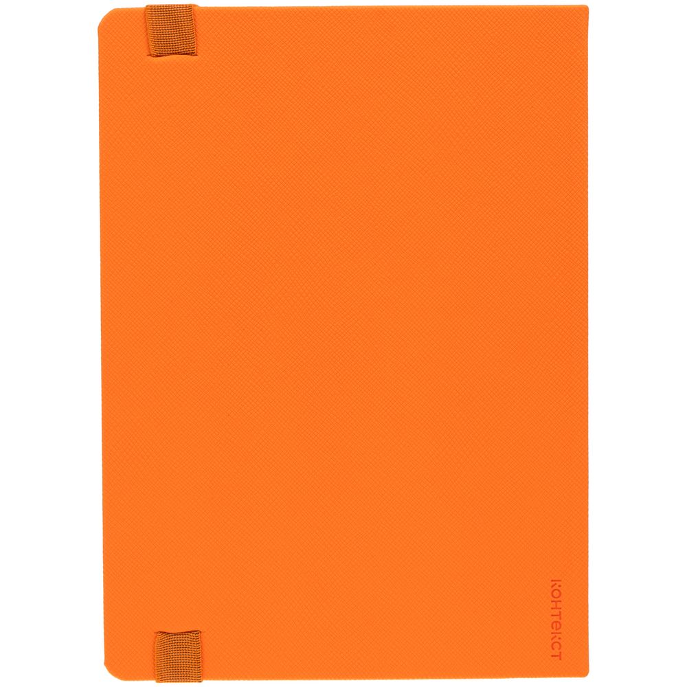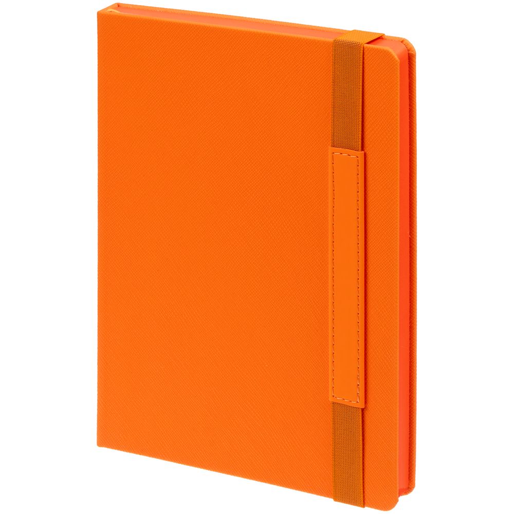 Ежедневник с твердой обложкой, выполнен из материала Nice Touch, оранжевый ОО, дополнен резинкой с лейблом из материала Soft Touch и ляссе в цвет обложки.