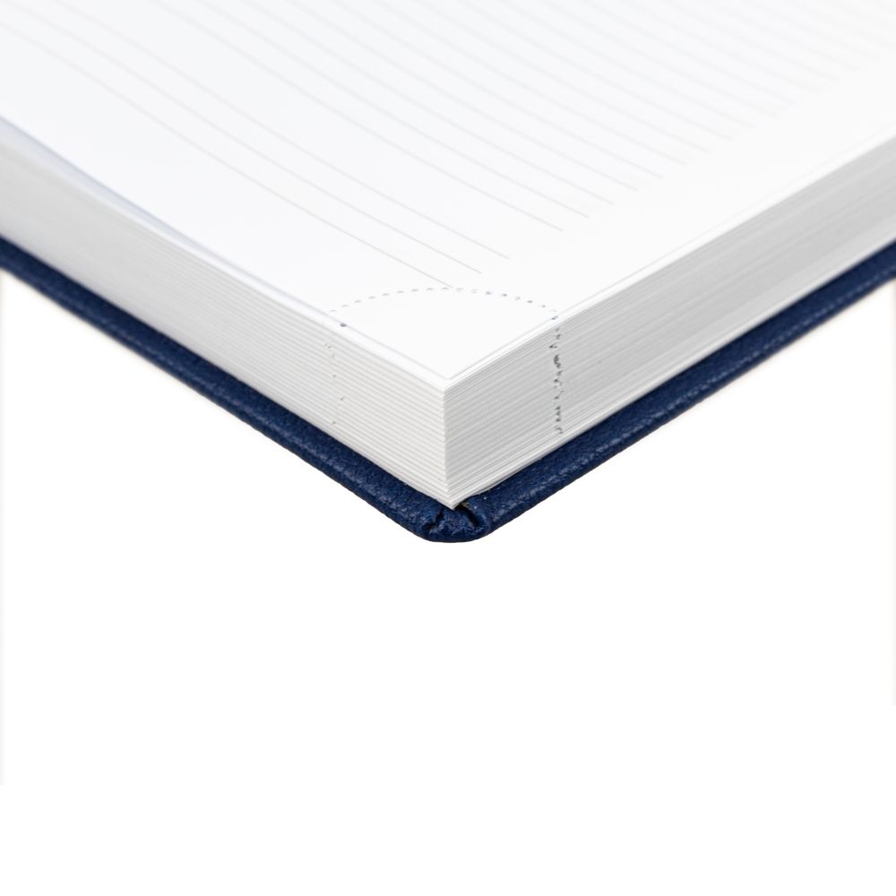 Ежедневник в твердой обложке c поролоном, выполнен из материала La Fite, синий НН, дополнен ляссе белого цвета.