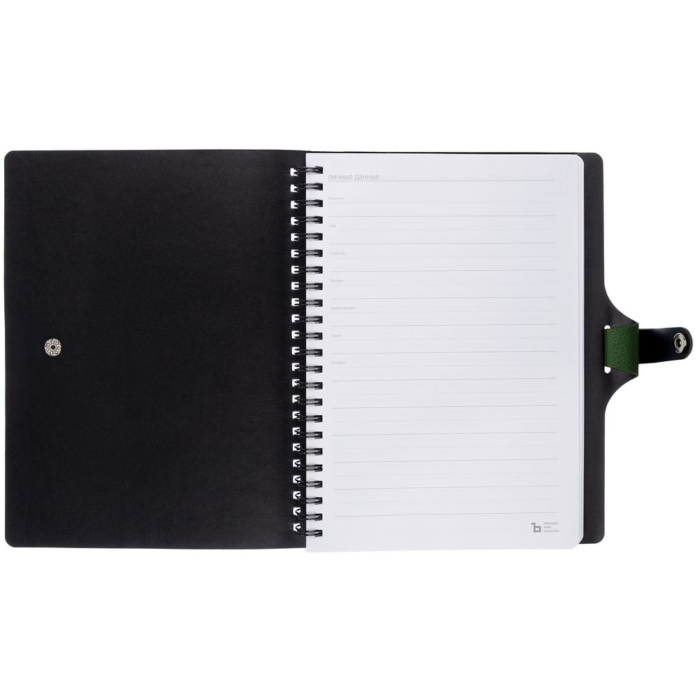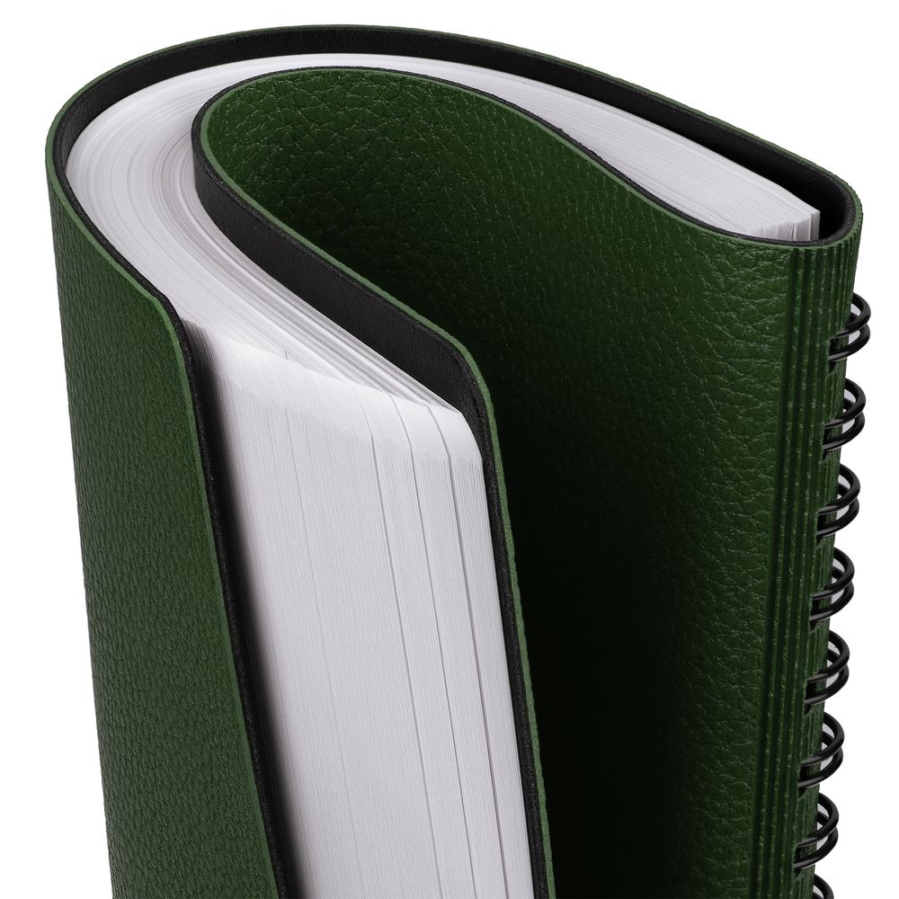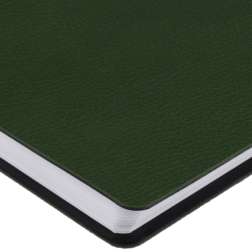 Ежедневник с гибкой обложкой, выполнен из материалов La Fite, зеленый FF и Waltz черный АА.