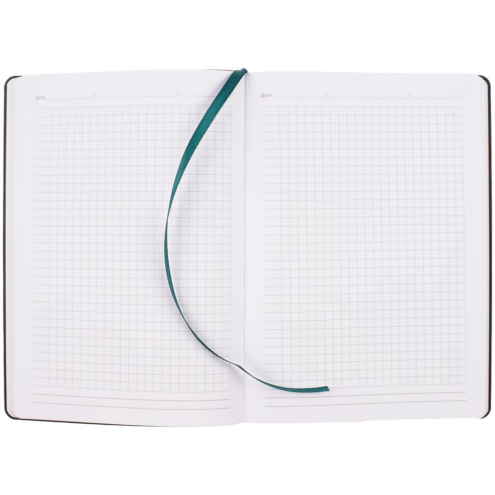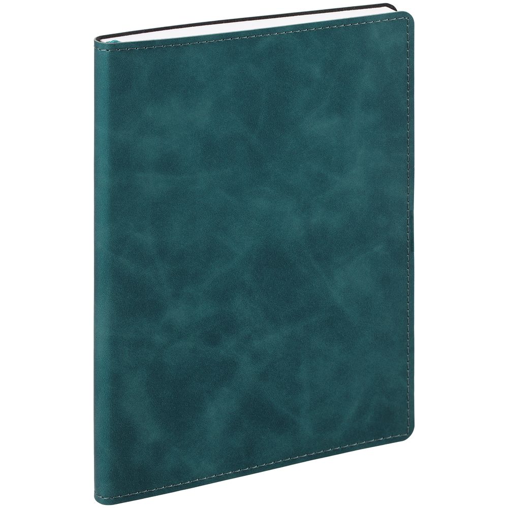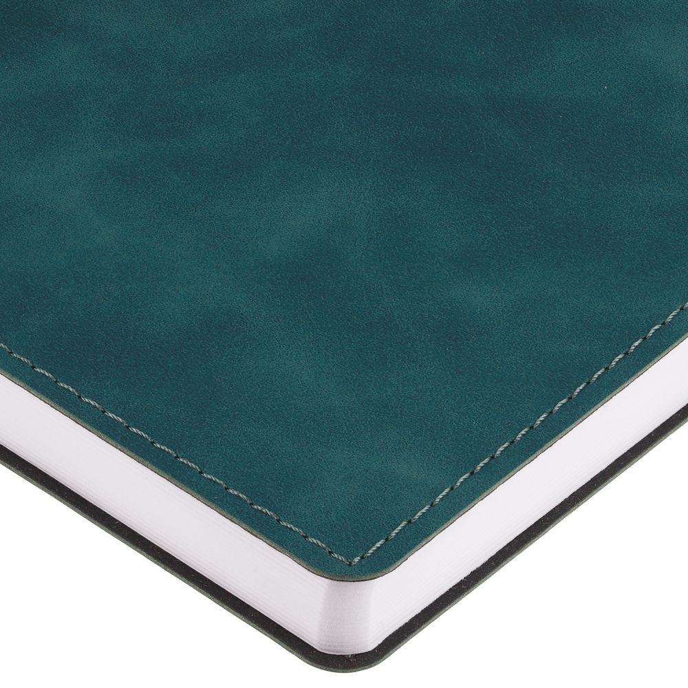 Ежедневник с гибкой обложкой, выполнен из материала Nubuck Touch, бирюзовый II, дополнен ляссе в цвет обложки.