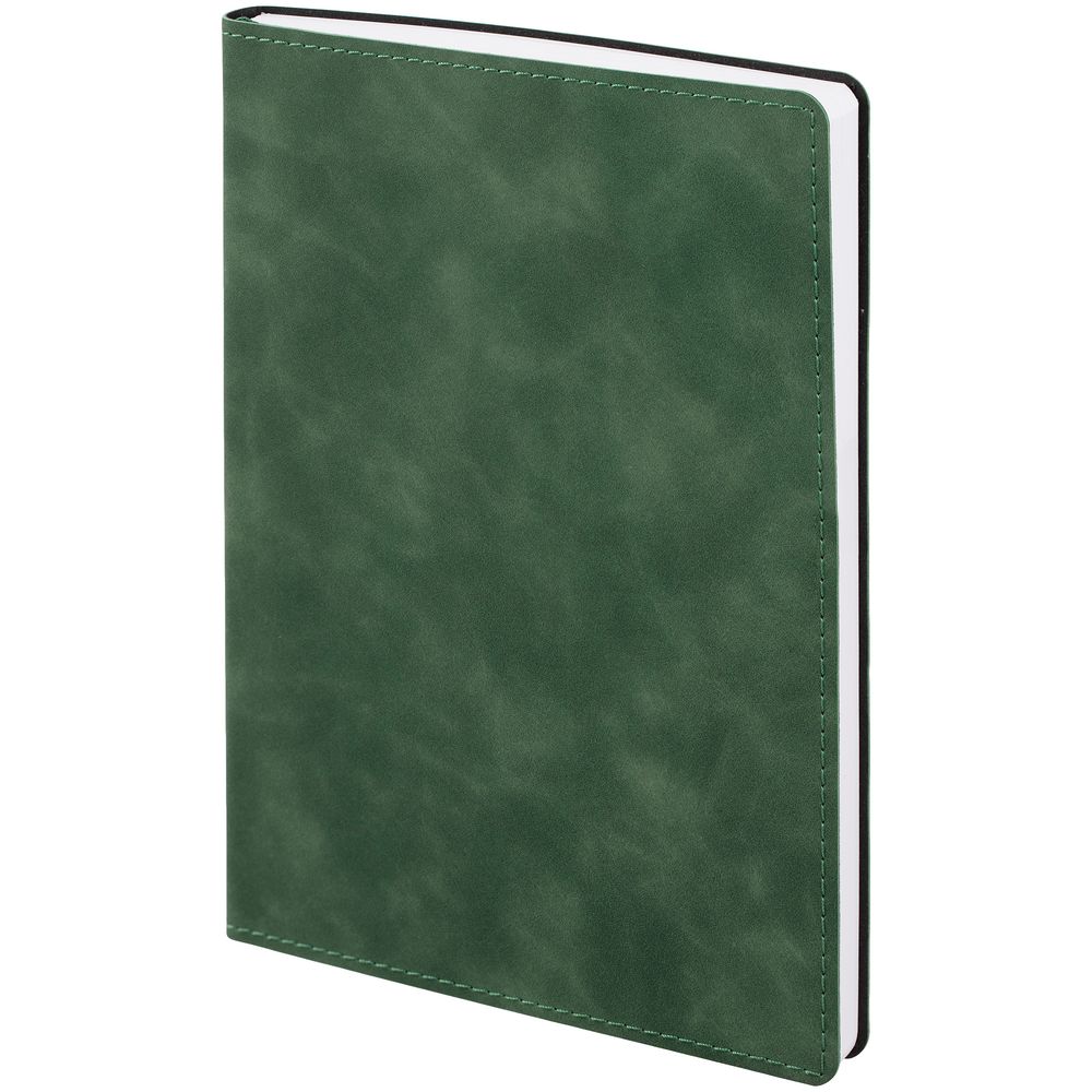 Ежедневник с гибкой обложкой, выполнен из материала Nubuck Touch, зеленый FF, дополнен ляссе темно-зеленого цвета.
