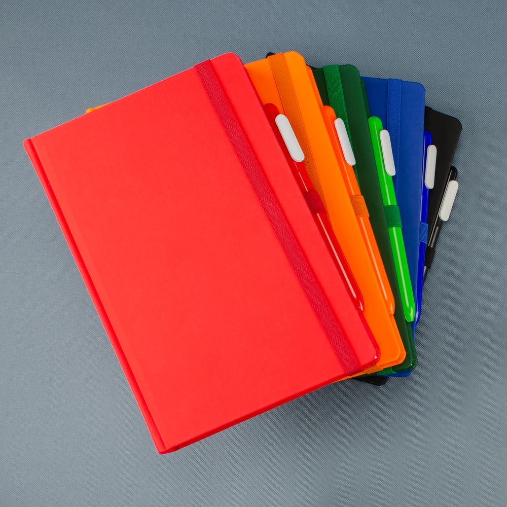 Ежедневник с твердой обложкой без поролона, выполнен из материала Soft Touch, оранжевый ОО, дополнен резинкой шириной 1 см, петлей-резинкой для ручки, капталом и ляссе оранжевого цвета.