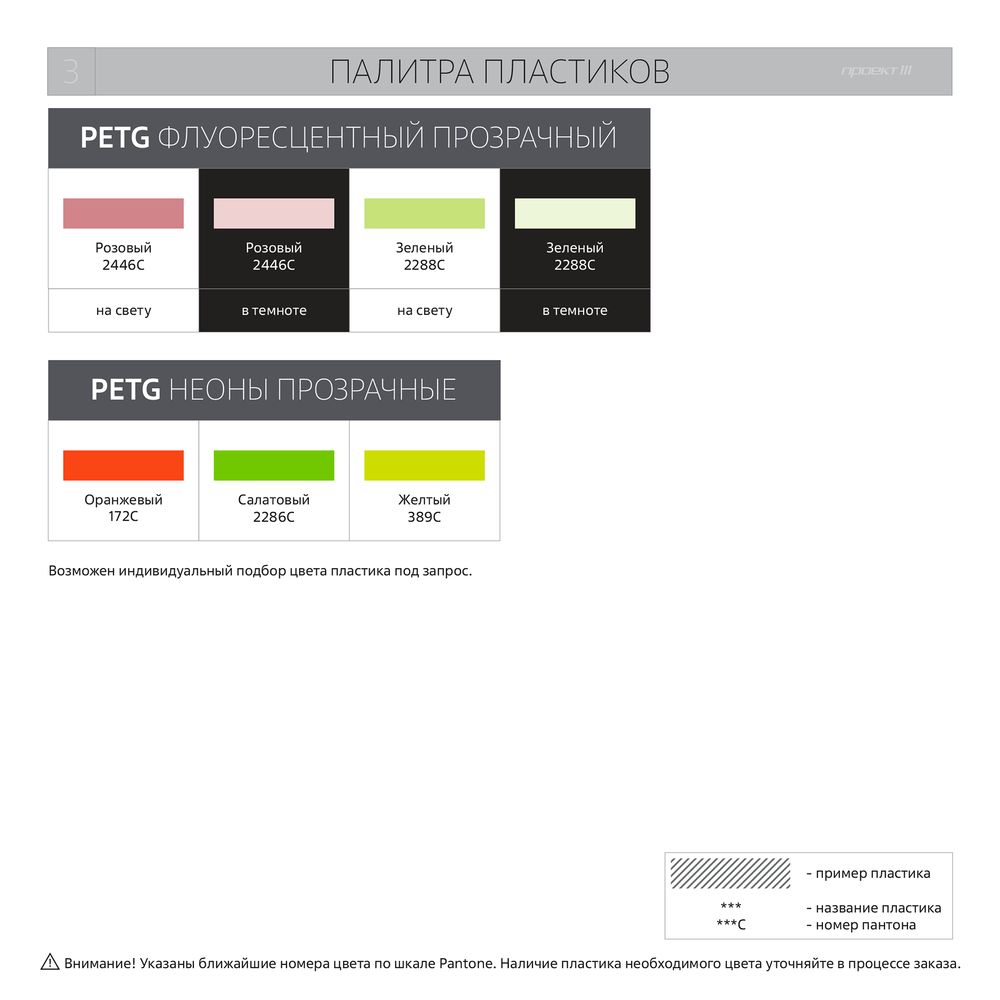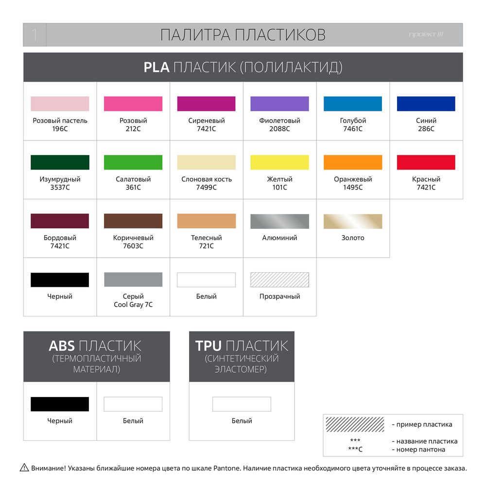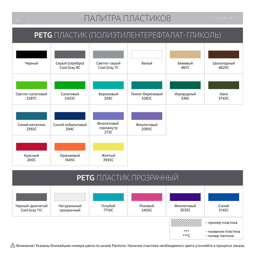 • Цвет и тип пластика. Варианты цветов можно посмотреть в разделе «Фотографии».
