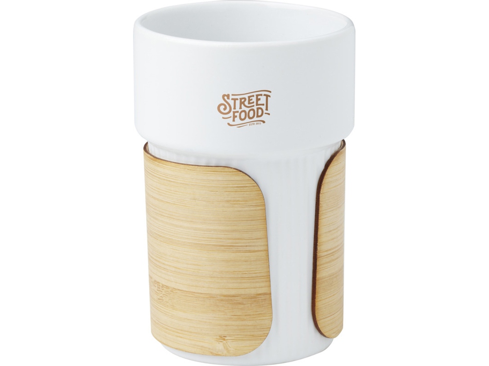 Fika стакан 340 мл с бамбуковым чехлом - Белый купить оптом и в розницу с нанесением логотипа в Нижнем Новгороде