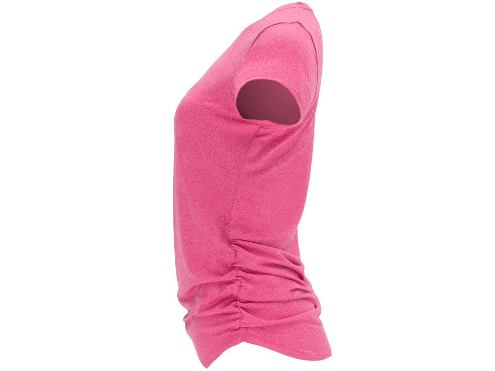 Спортивная футболка с коротким рукавом для женщин. Полотно из полиэстера на ощупь напоминающее хлопок. Круглый вырез горловины обработан бейкой из того же полотна. Эластичная драпировка по боковым швам для лучшей посадки по фигуре. Узкий силуэт.