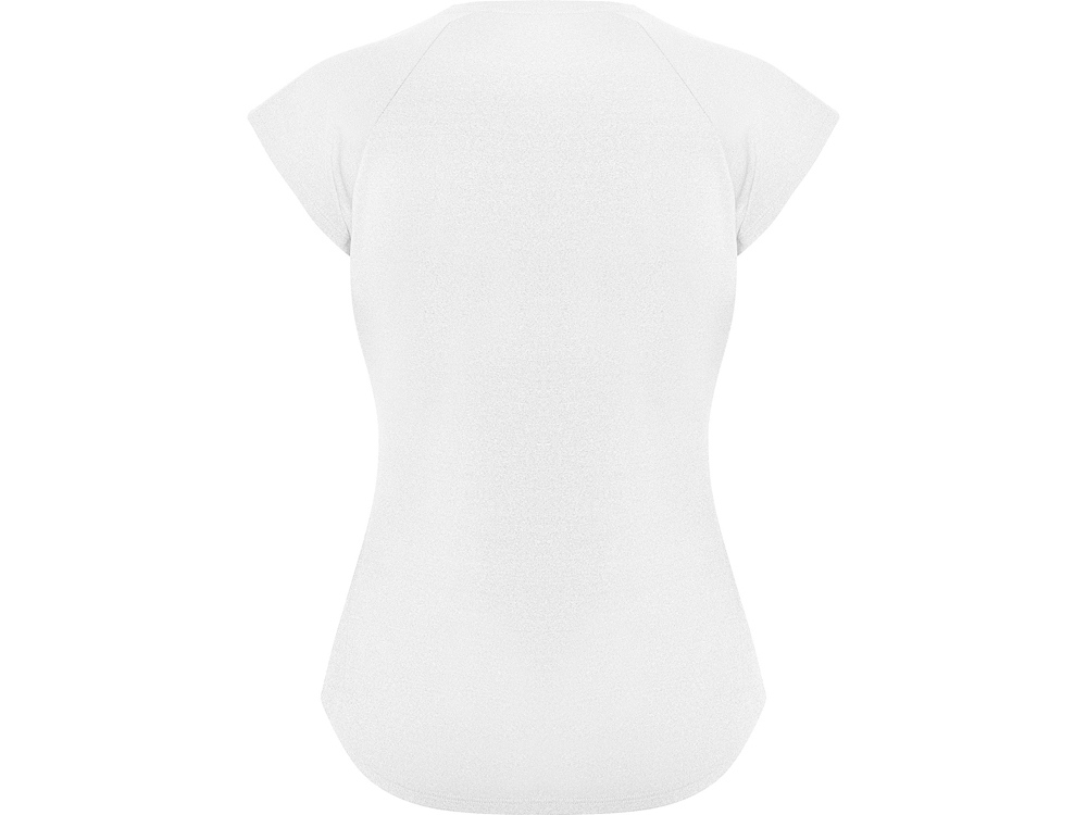 Спортивная женская футболка с коротким рукавом реглан. Вырез горловины V. Полотно из полиэстера на ощупь напоминающее хлопок. Приталенный силуэт.