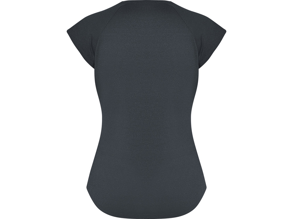 Спортивная женская футболка с коротким рукавом реглан. Вырез горловины V. Полотно из полиэстера на ощупь напоминающее хлопок. Приталенный силуэт.