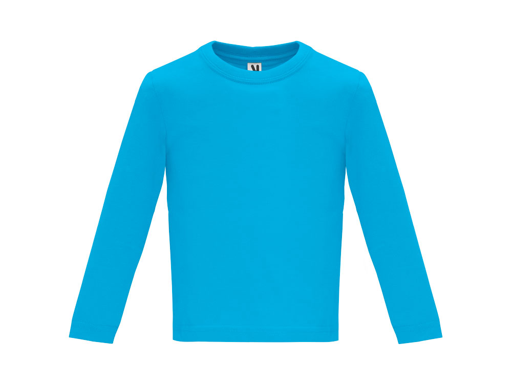 Футболка с длинным рукавом специально для малышей. Тактильное полотно со специальной отделкой. Круглый вырез горловины и застежка на кнопки на плече для размеров 6месяцев - 18 месяцев. Для размера 2 года без застежки на плече. Боковые швы.