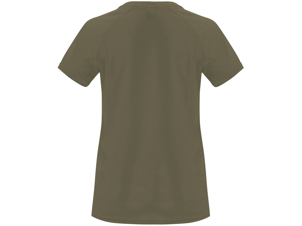 Спортивная футболка с коротким рукавом реглан для женщин. Круглый вырез горловины с отделкой плоским швом. Рукав сложного кроя для обеспечения дополнительного удобства при занятиях спортом. Отделка плоским швом с застилом по пройме и рукавам. Технологичное полотно с функцией DRY CONTROL и защитой от UV излучения