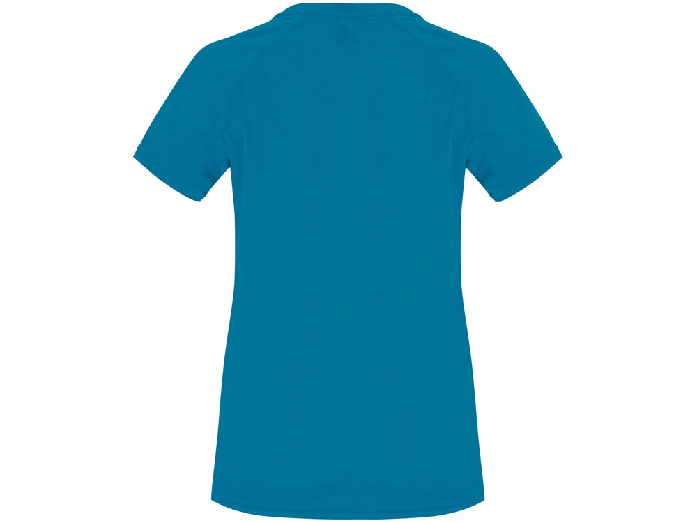 Спортивная футболка с коротким рукавом реглан для женщин. Круглый вырез горловины с отделкой плоским швом. Рукав сложного кроя для обеспечения дополнительного удобства при занятиях спортом. Отделка плоским швом с застилом по пройме и рукавам. Технологичное полотно с функцией DRY CONTROL и защитой от UV излучения