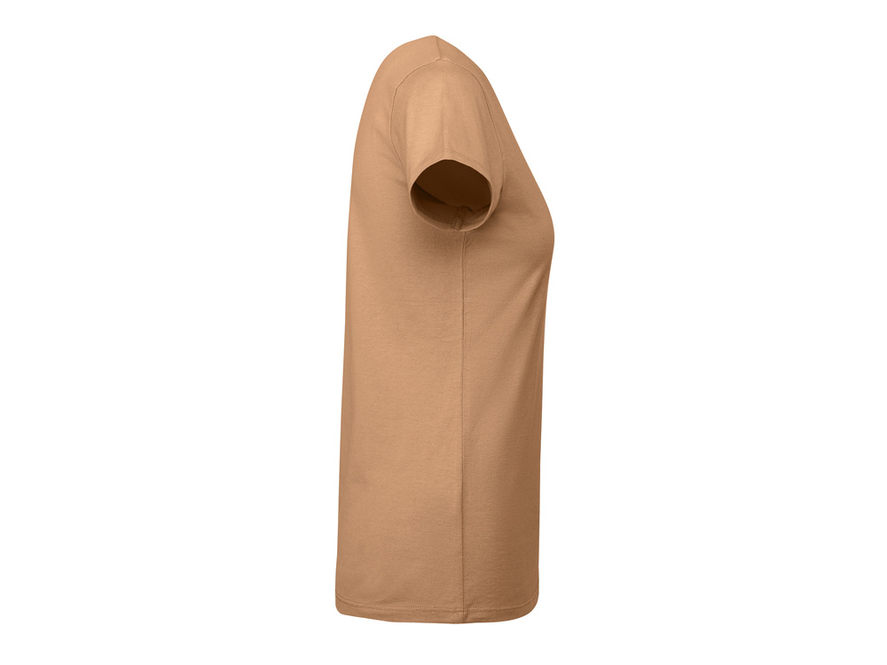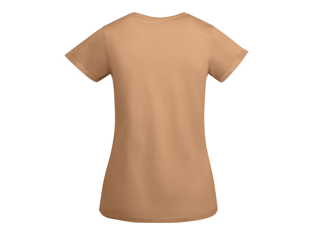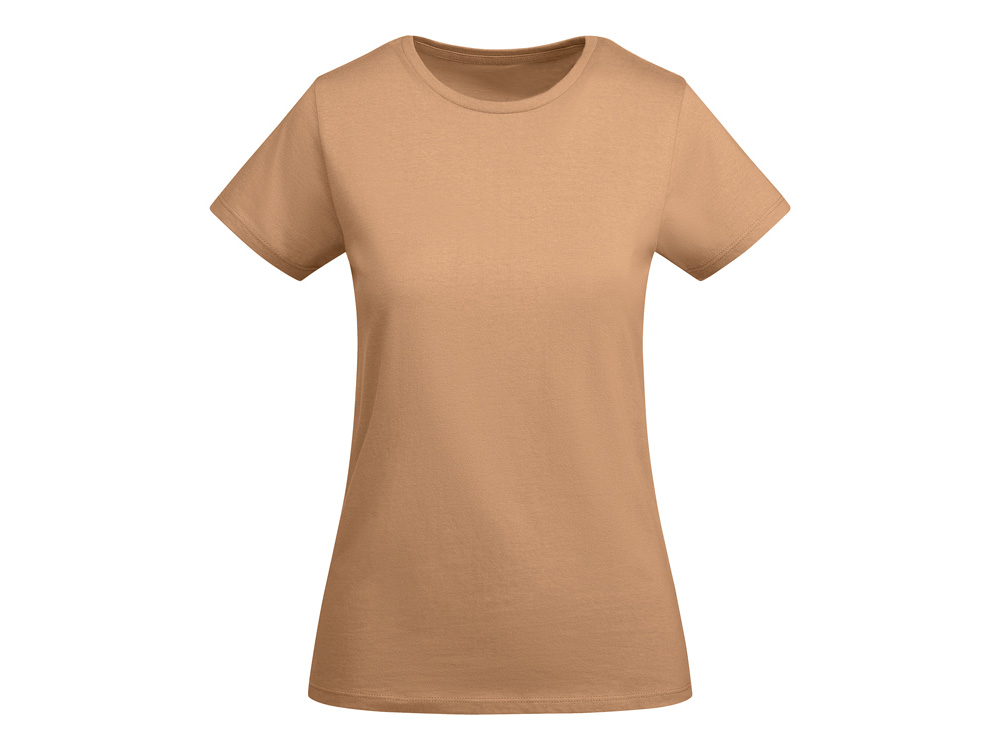 Облегающая женская футболка с коротким рукавом из органического хлопка, сертифицированного OCS. Горловина из риба 1x1. Усиленные закрытые швы по воротнику. Боковые швы.