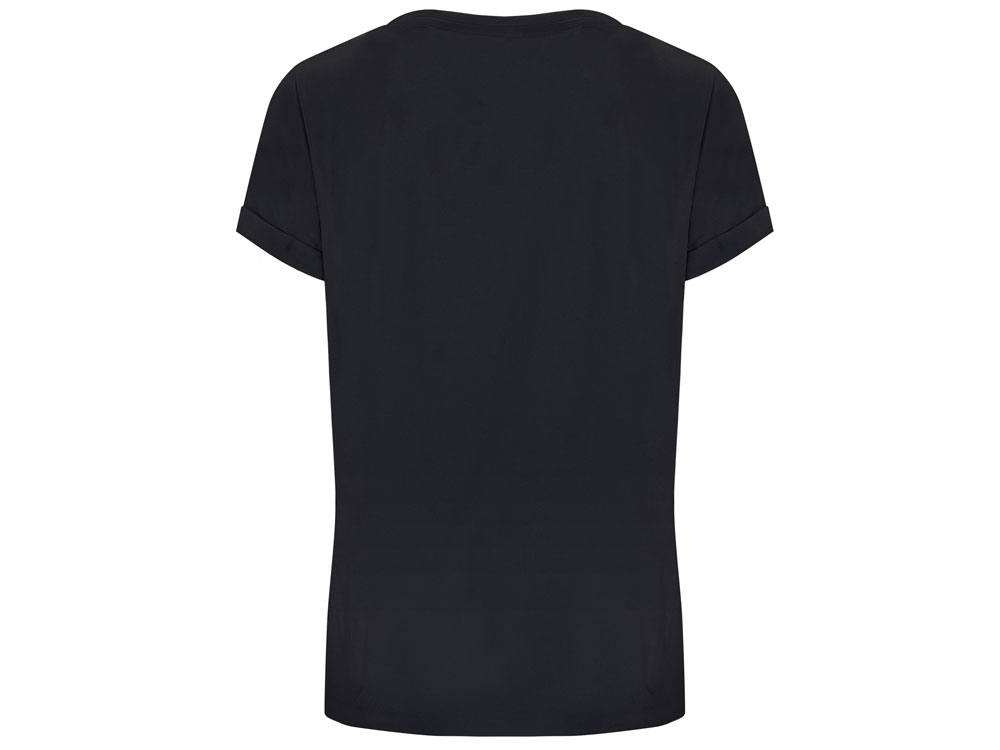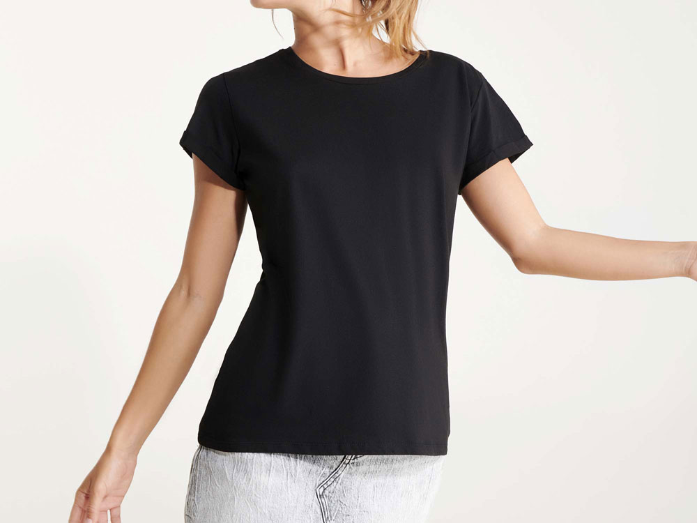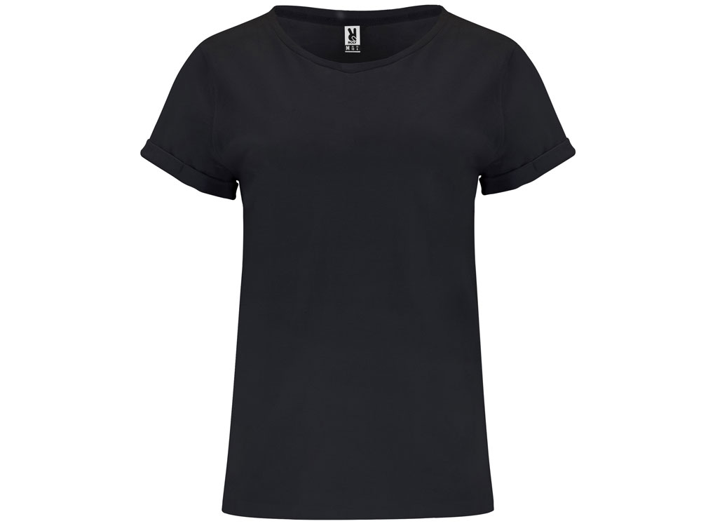 Футболка с коротким рукавом. Круглый вырез горловины отделан основным полотном. На рукавах подвороты закреплены в 4 местах.