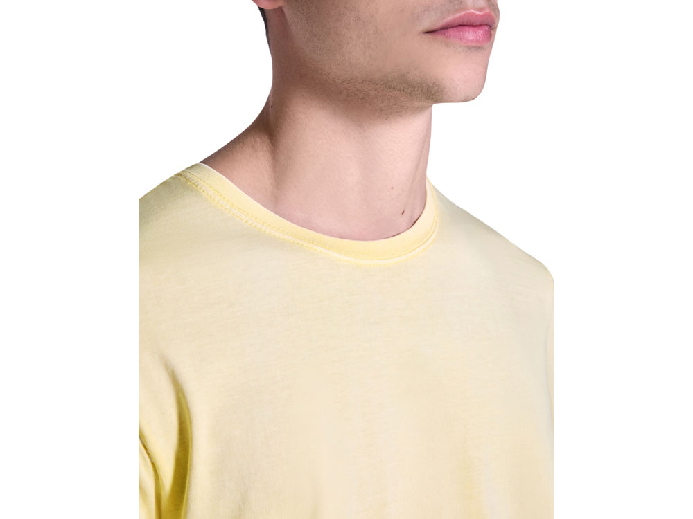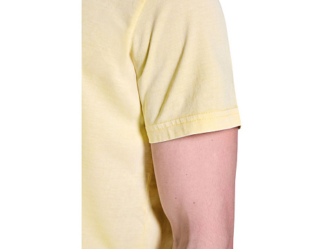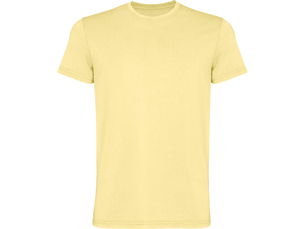 Мужская футболка с коротким рукавом из 100% хлопка с аксидной стиркой. Круглый вырез горловины из риба 1х1. Отстрочка в тон по горловине.