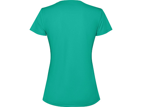 Женская футболка с коротким рукавом из технологичного полотна. Отстрочки в тон. Спинка с удлинением. Боковые швы со смещением вперед.