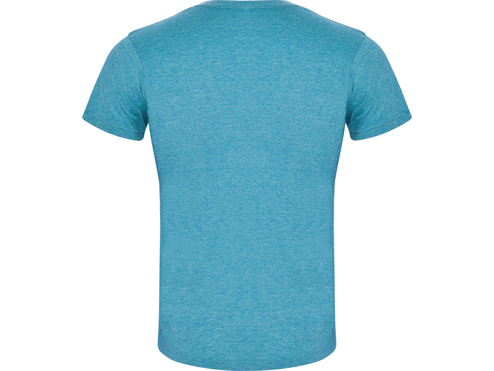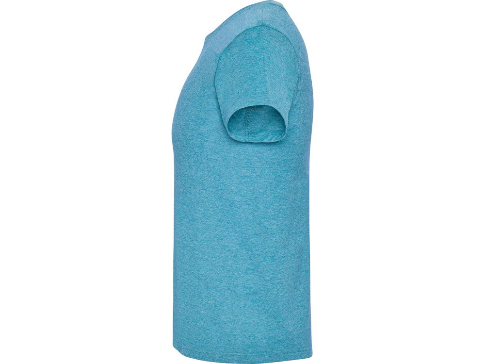 Футболка без боковых швов с коротким рукавом в меланжевом эффекте. Риб горловины 1х1 дополнительно укреплен двойной строчкой.