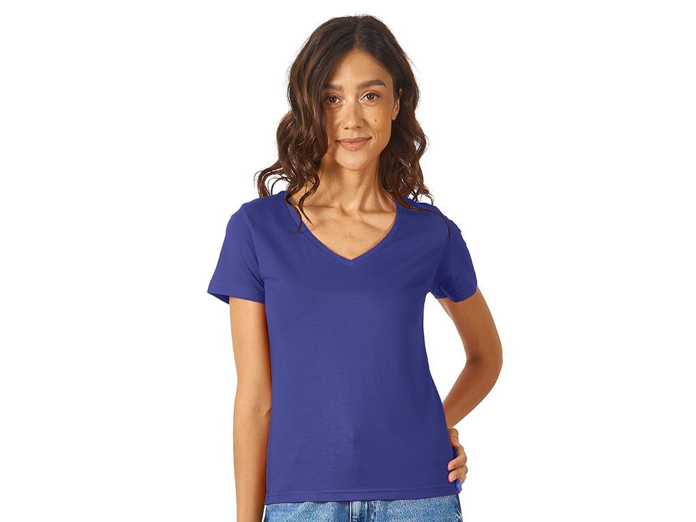 Женская футболка из натурального хлопка с элегантным V-образным вырезом. Материал отлично подходит для нанесения рекламной информации. Натуральная ткань не вызывает раздражения кожи.
