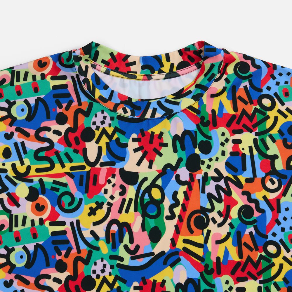 Одежда с печатью рисунка в крое, известной также как all-over или seamless print, предполагает нанесение стойкого полноцветного рисунка (паттерна или узора, не требующего совмещения) на ткань методом сублимации еще до этапа пошива. Такой способ брендирования отличается от печати на готовой одежде и имеет свои уникальные преимущества: