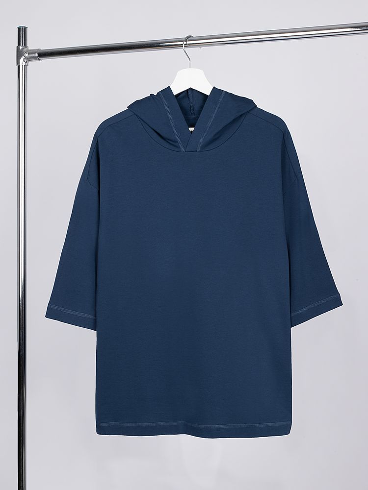Футболка оверсай унисекс с капюшоном Neofit, темно-синяя