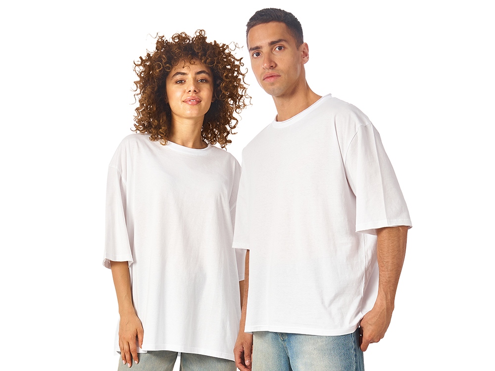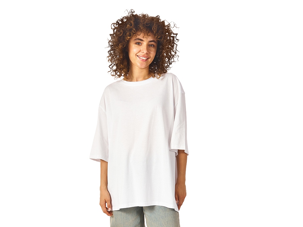 Футболка оверсайз предназначена для женщин и мужчин, имеет расслабленное настроение, которое подчеркивается не только посадкой, но и декоративной отделкой низа рукавов и горловины. Материал — хлопковое джерси, плотность ткани средняя (150 гр/м2), что позволяет носить футболку в жаркие летние дни. Лейбл скрыт, благодаря чему все внимание достанется вашему брендированию.