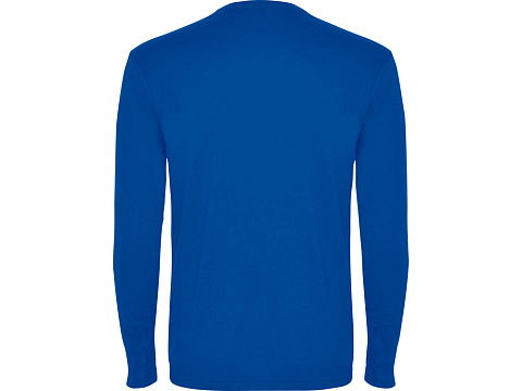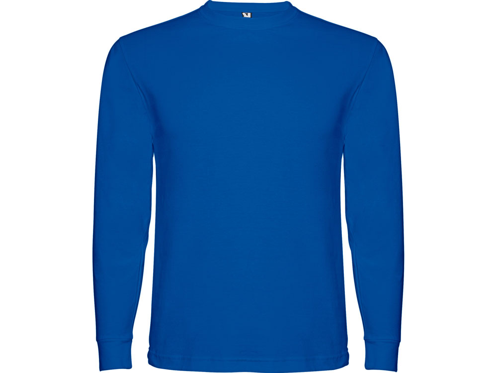 Детская футболка с длинным рукавом и боковыми швами. Круглый вырез горловины отделан рибом 1х1. Плечевые швы и горловина спинки усилены тесьмой.