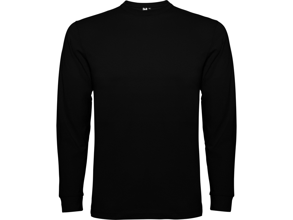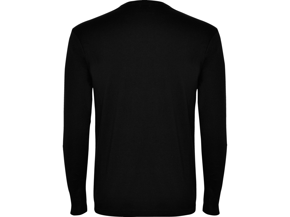 Футболка с длинным рукавом без боковых швов. Круглый вырез горловины и манжеты из риба 1х1. Укрепляющая отделочная строчка по горловине и плечам