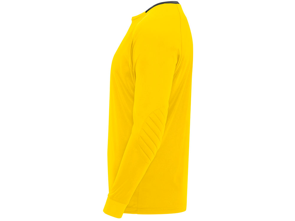 Мужская спортивная футболка. Длинный рукав со усиленным стеганым налокотником. Контрастная вставка на внутренней части рукава. Контрастная деталь на бейке горловины сзади и на манжетах