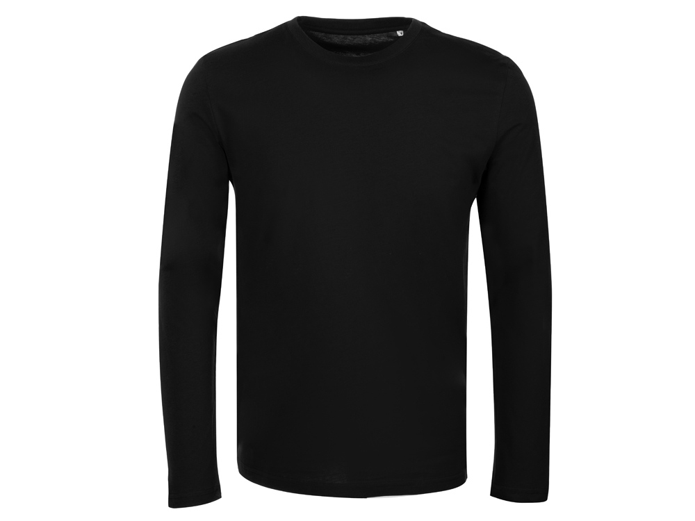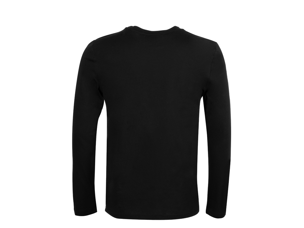 Футболка с длинным рукавом комфортной посадки с боковыми швами. Горловина обработана рибом 1х1 и тесьмой по спинке. Футболка выполнена из хлопкового джерси.