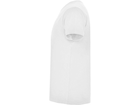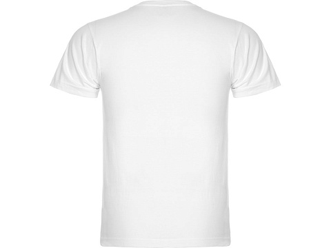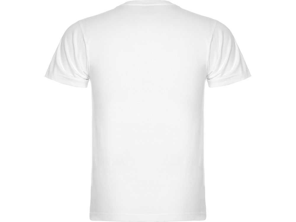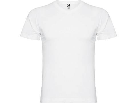 Мужская футболка без боковых швов с коротким рукавом и V-образным вырезом горловины, отделанном рибом 1х1. Горловина и плечевые швы дополнительно укреплены тесьмой.