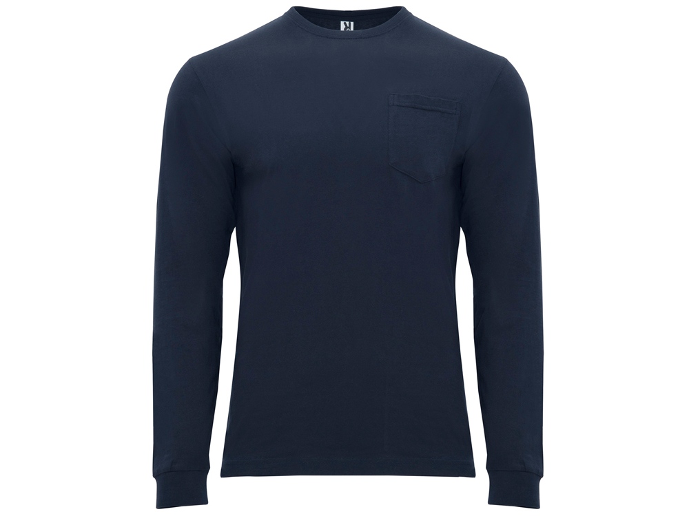Футболка с длинным рукавом. Круглый вырез горловины и манжеты обработаны рибом 1х1. Карман на полочке слева. Отделочная строчка для усиления по горловине и плечевым швам.
