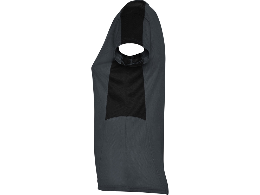 Женская футболка с коротким рукавом. V-образная горловина. Комбинация из 2 полотен контрастного цвета: структурное полотно на полочке и дышащая 3D сетка на плечах и боках.