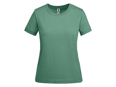 Женская футболка с коротким рукавом из плотного хлопка. Широкая горловина в рубчик 2x1 и окантовка краев рукавов. Усиленные закрытые швы по горловине. Боковые швы. Наличие логотипа Roly на левой стороне низа и широкая отстрочка.
