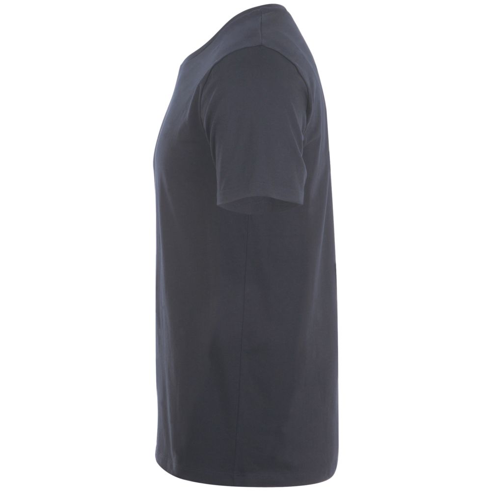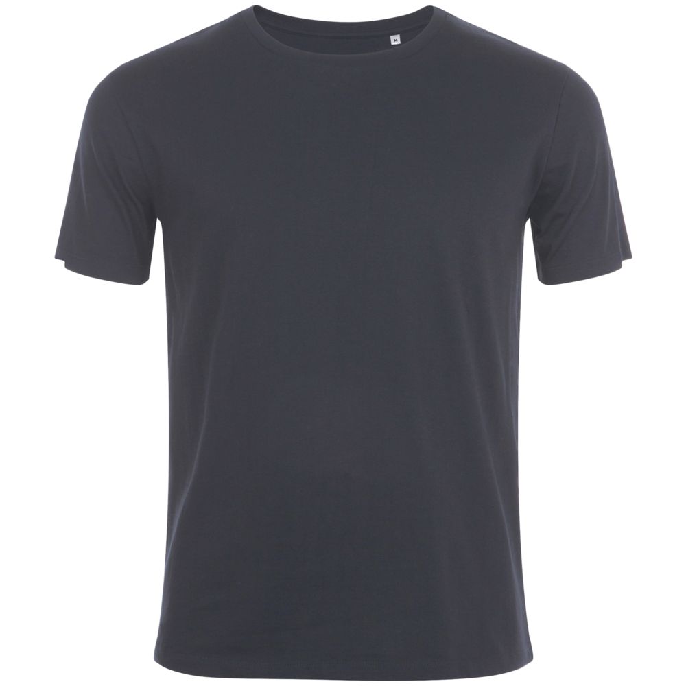 Кроеная мужская футболка с круглой горловиной. Ворот в тонкую резинку с укрепляющей тесьмой. Облегающий силуэт.