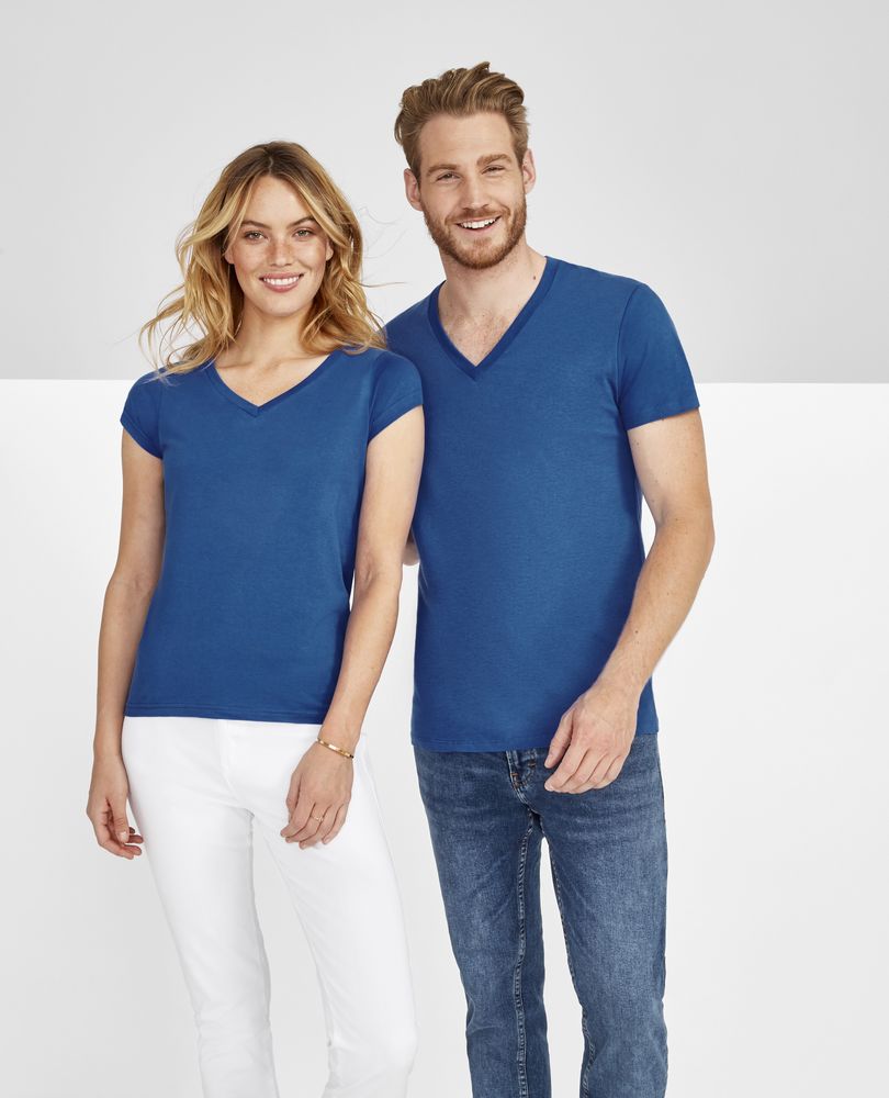Модная мужская футболка с глубоким V-образным вырезом, отделанным резинкой 1*1, подойдет как для промо-акций, так и в качестве корпоративной униформы. Полугребенной 100% хлопок, двойная прострочка на рукавах и по низу изделия, укрепляющая тесьма по вороту.