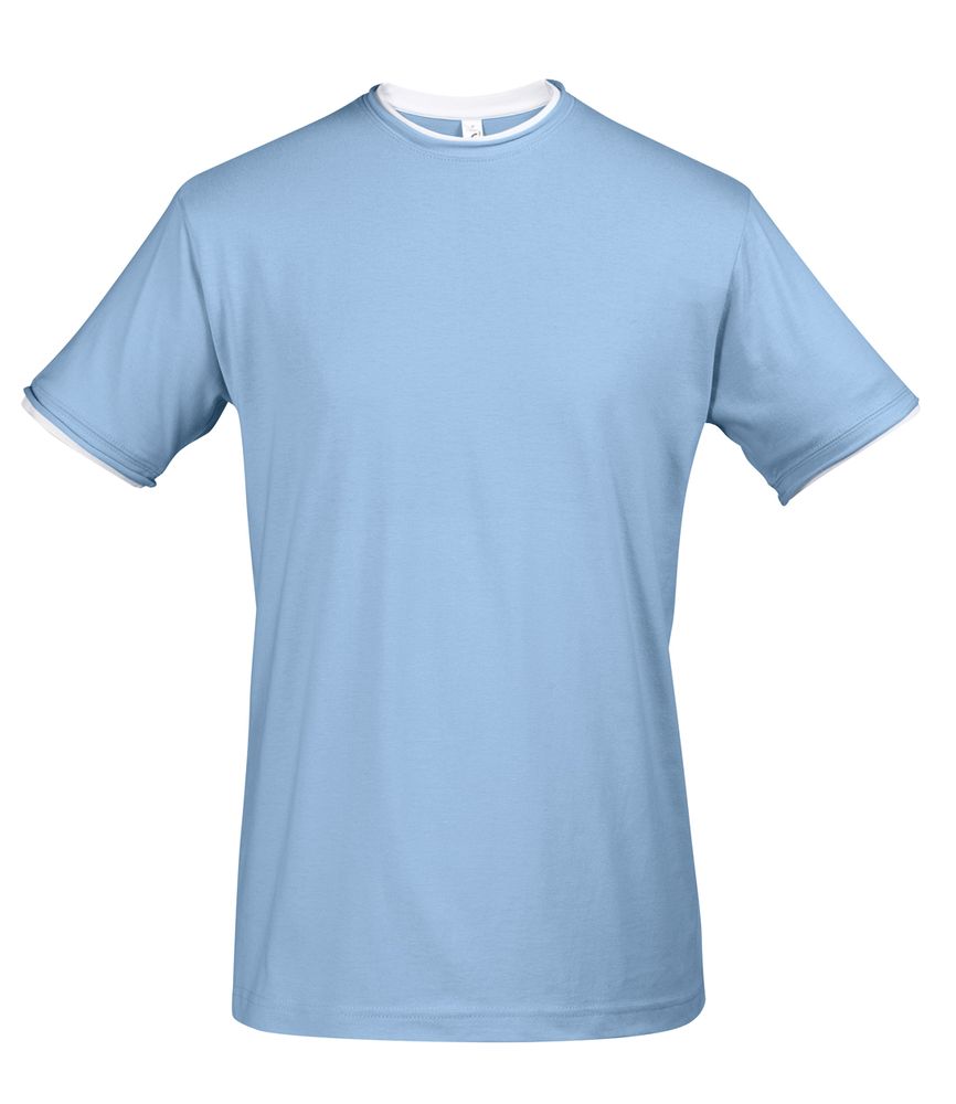 Футболка мужская с контрастной отделкой Madison 170, голубой/белый купить оптом и в розницу с нанесением логотипа в Нижнем Новгороде