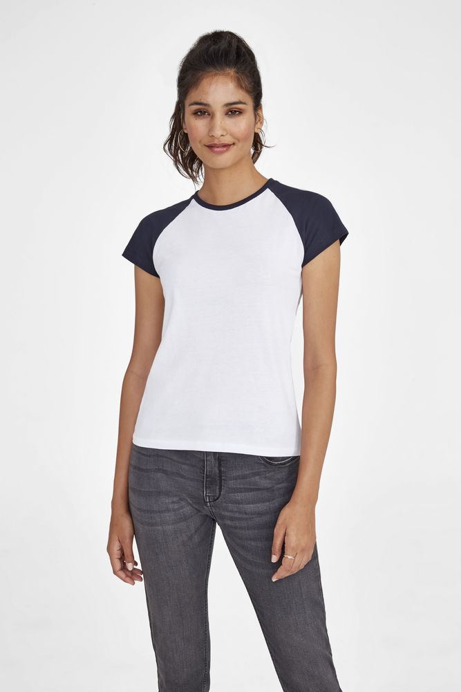 Футболка женская Milky 150, белая с красным купить оптом и в розницу с нанесением логотипа в Нижнем Новгороде