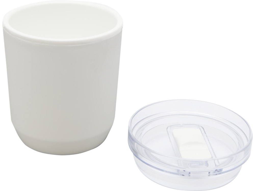 Кружка с простым дизайном, подходящая для большинства кофемашин и автомобильных подстаканников. Имеет двойную конструкцию из переработанного пластика PP снаружи и пластика PP внутри. Раздвижная крышка изготовлена из пластика AS и PP. Объем: 180 мл. Recycled Plastic.