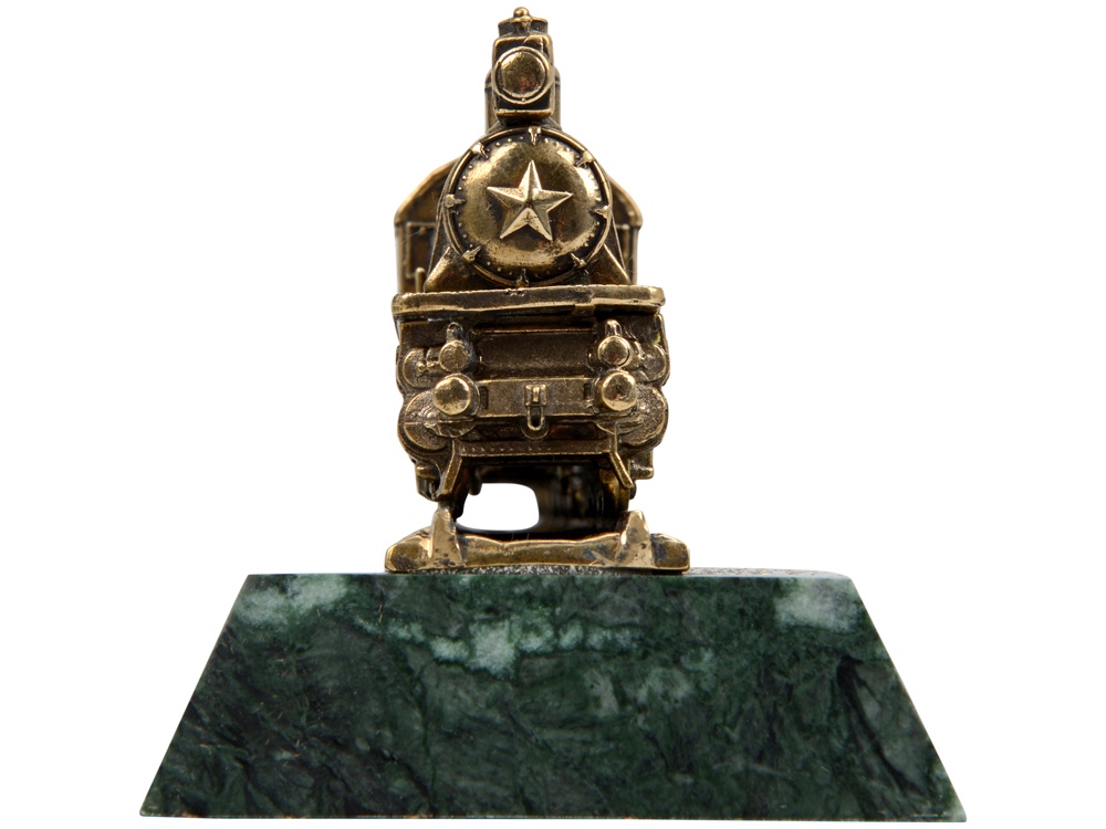 Модель русского и советского грузового паровоза серии Э, который был первым паровозом построенный по схеме 0-5-0 - пять движущихся осей в одной жёсткой раме, не имеющих бегунковых и поддерживающих осей. Первоначально простая и надежная конструкция была разработана Вацлавом Лопушинским. Успех применения данного паровоза обеспечил ему добрую славу и долгую жизнь - он выпускался с 1912 по 1957 г. Модель может использоваться как подарочный настольный набор для руководителя. В вагон можно складывать мелкие канцелярские принадлежности - скрепки, стёрки и т.п.